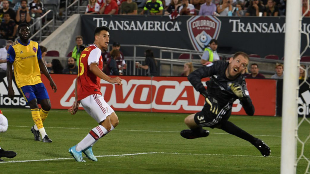 และเจ้าตัวใช้เวลาในสนามไปทั้งสิ้น 61 นาที ก็สามารถพังประตูในสีเสื้อใหม่ได้แล้ว ซึ่งเป็นการใช้หน้าอกในการทำประตู โดยเป็นการทำประตูจากการแอสซิสต์ของ โดมินิค ธอมป์สัน ที่เปิดจากทางฝั่งซ้ายเข้าไปในกรอบเขตโทษ ก่อนที่ มาร์ติเนลลี่ จะใช้หน้าอกกระทุ้งเข้าไปประตูไป